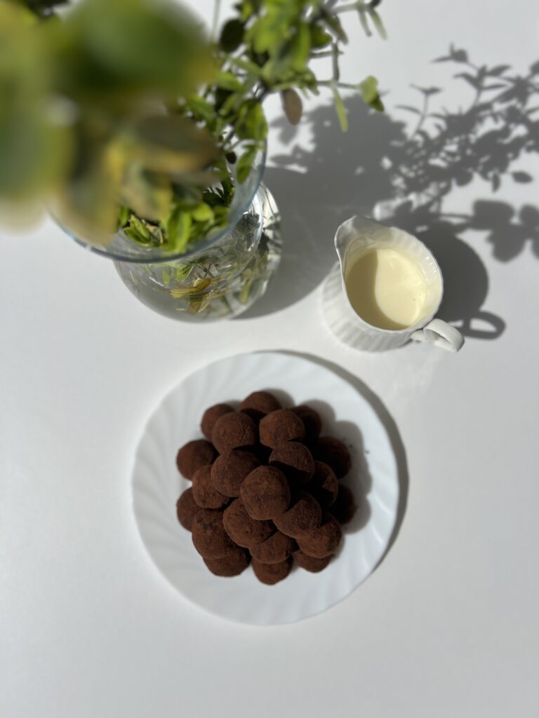 - Formăm biluțe de aproximativ 20g pe care le tăvălim ulterior în cacao.